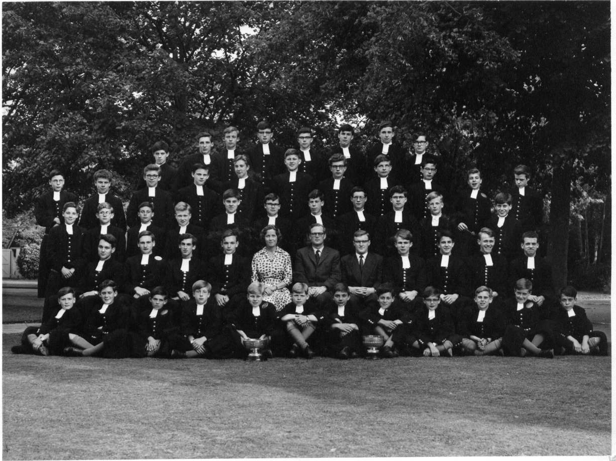 G.B.H. Stearn, N.P. Kirker, J.P.K. Tillett, P.C. Robbins, I.M Farr (matron), C.J. Miller (Housemaster), N. Simms (Deputy Housemaster), R. Philips, M.J. Lancefield, G.H. Bostock, V.C. Roberts